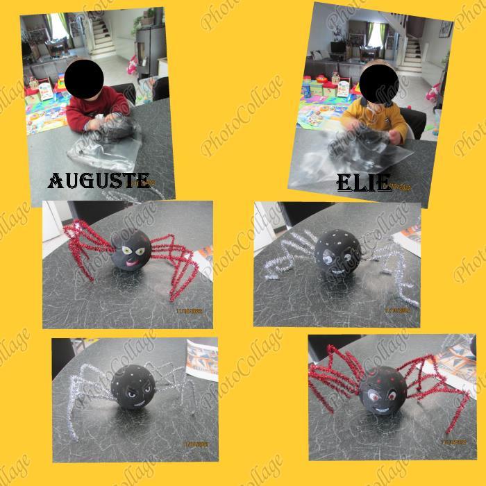 Ce matin, les loulous ont peint (peinture propre) une boule de polystyrène pour en faire une araignée
