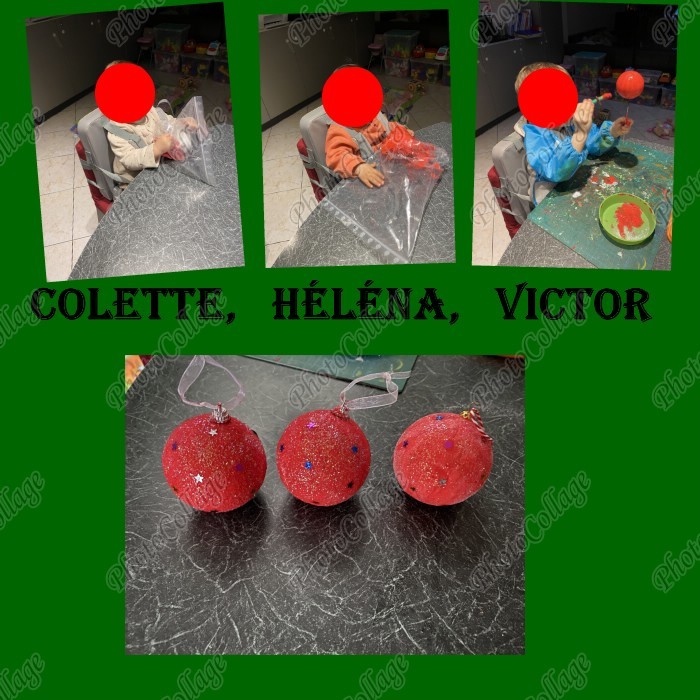 Colette et Héléna ont fait de la peinture propre pour peindre leur boule Par contre Victor l'a peint au pinceau !