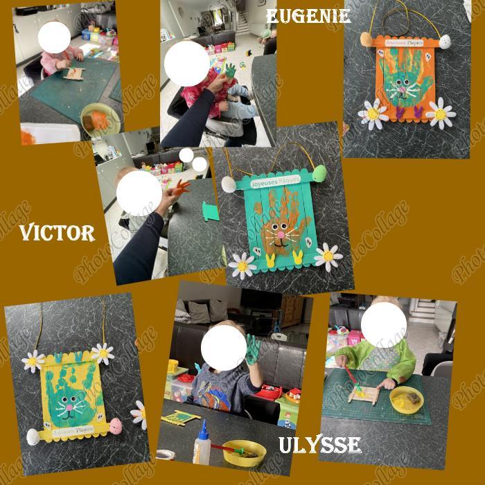 Ce matin les loulous ont réalisé des lapins, les deux grands avec des tampons et les deux petits avec leurs petits petons !