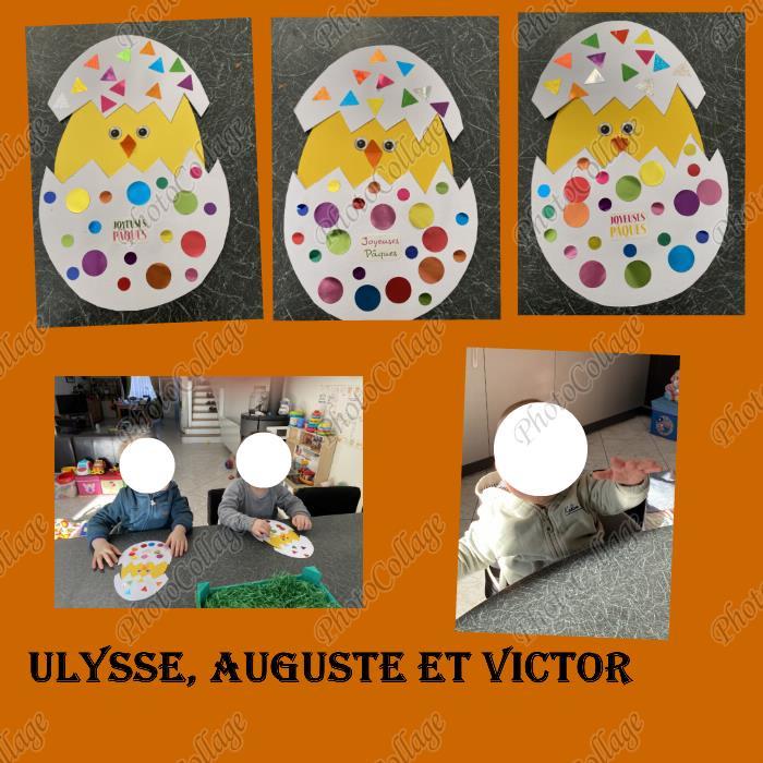 Ce matin, les garçons ont réalisé un joli poussin dans son œuf avec des gommettes